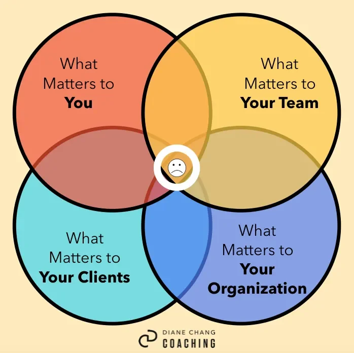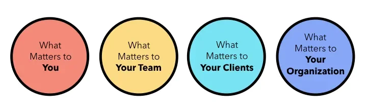 Then, take a close look at What Matters to each member of the team that you work with, including your team members, your manager, your peers, your delivery partners, and your clients. I know it sounds like a lot of work, but if done artfully and with sincerity, you’ll also build more mutually trusting relationships with each of them.